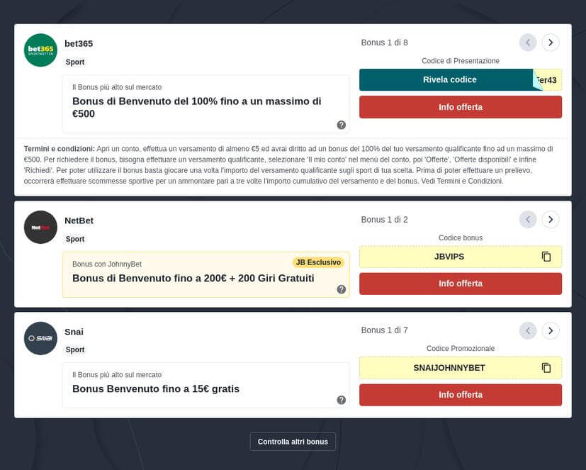 Il Bonus più alto sul mercato