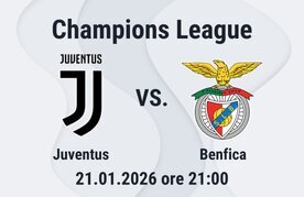 Sta per arrivare il Pronostico Juventus - Benfica di Champions League. La partita si giocherà il 21 Gennaio 2026 all'Allianz Stadium di Torino, ore 21:00. Al momento le quote scommesse Juventus - Benfica sono reperibili su bet365 che quota l'1 a 1.85, l'X a 3.40 e il 2 a 4.50. Adesso passiamo al pronostico vincente Juventus - Benfica Champions League.